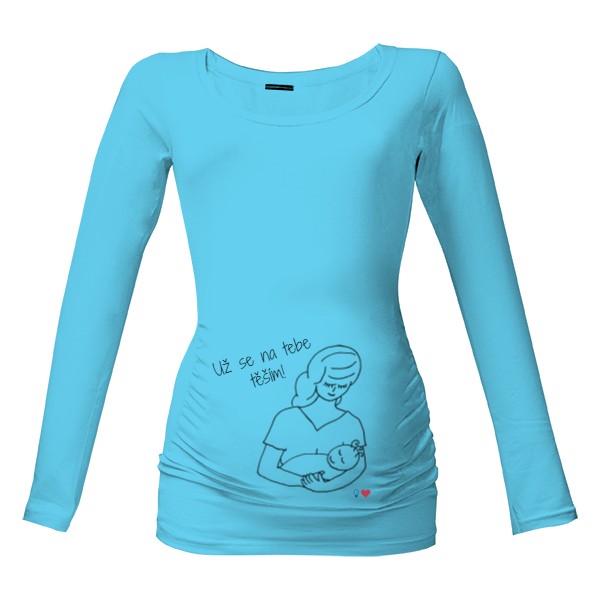 Triko pro těhotné s autorským obrázkem od Zažrané mámy a nápisem "Už se na tebe těším!"